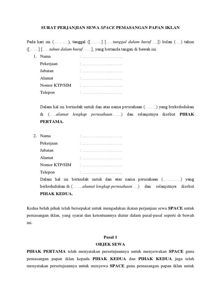 Surat Perjanjian Sewa Space Pemasangan Papan Iklan Pdf